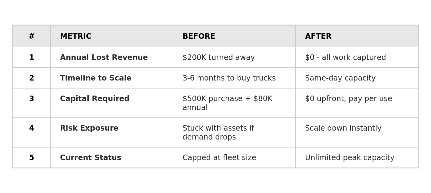 The trucks existed. The skilled technicians existed. The insurance and maintenance infrastructure existed. My client just needed to create the deal.