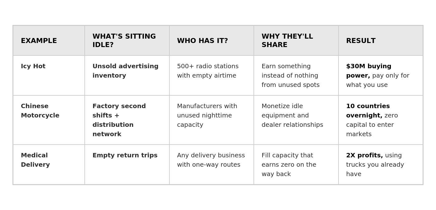 Revenue Generation: You monetize idle capacity that was generating zero revenue. Sam’s medical delivery company doubled profits by filling empty return trips. The lawnmower factory earned $20M from nighttime capacity that previously sat dark.